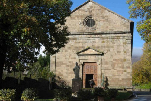 Consacrata nel 1524, fu innalzata sul luogo di una cappella costruita a seguito del rinvenimento di un’immagine della Madonna dipinta su una tegola appesa ad un castagno. L’architettura è tipicamente rinascimentale e presenta un prospetto a capanna con oculo, affiancato da due lesene sulle quali si appoggia una cornice marcapiano. Il portale con timpano triangolare introduce ad un’aula rettangolare coperta a capriate e ornata con altari in stucco.