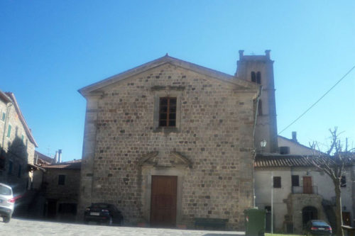 L’attuale edificio, risalente al 1681, ha la facciata decorata da lesene ai lati e dal portale con timpano spezzato sormontato da una finestra. Il trecentesco campanile presenta tre ordini di bifore ed una trifora in parte tamponata. L’interno ha una pianta rettangolare che termina con un’abside ed è coperto a capriate.Vi era conservata una Madonna col Bambino policroma in legno di Jacopo della Quercia, attualmente collocata presso il museo diocesano di Palazzo Orsini di Pitigliano.Nella parete destra è collocata la pietra sepolcrale del conte Ildebrandino di Bonifazio, e in quella sinistra un Crocifisso ligneo trecentesco. In sagrestia si trovano due busti-reliquiari di Sant’Agostino (1765) e Santa Monica (1773).