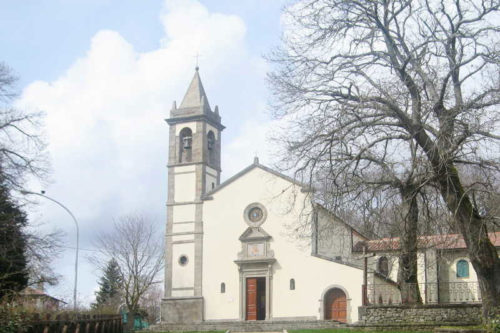 La chiesa attuale sorge su una precedente del XII sec. in stile romanico: fu tagliato il muro absidale e la parte con l’affresco della Madonna con il bambino fu posto sul nuovo altare maggiore. L’interno è affrescato in maniera innovativa dal pittore di origini pianesi Francesco Nasini. il Miracolo di Sant’Andrea Corsini, il ciclo di affrechi negli arconi (Ecce Homo e Trionfo di San Michele, 1640), l’Angelo annunciante e la Vergine annunciata, la Crocifissione (1641), e soprattutto le originalissime raffigurazione dei Novissimi (1641); alla sua bottega è riconducibile il Cristo deriso e i dipinti della cappella di San Carlo Borromeo.
